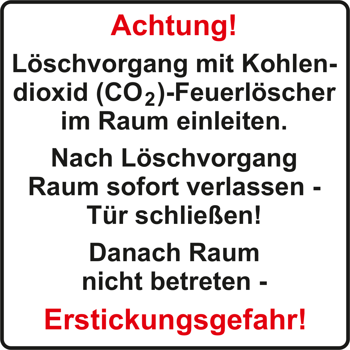 according to DGUV 205-034 for warning sign ISO 7010 / W041 ("“Attention! Extinguishing process in the room”)
