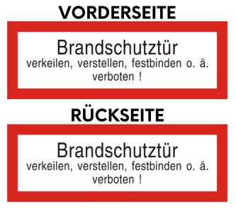 Brandschutzschild (2-seitig sichtbar) “Brandschutztür verkeilen, verstellen, festbinden o. ä. Verboten!”