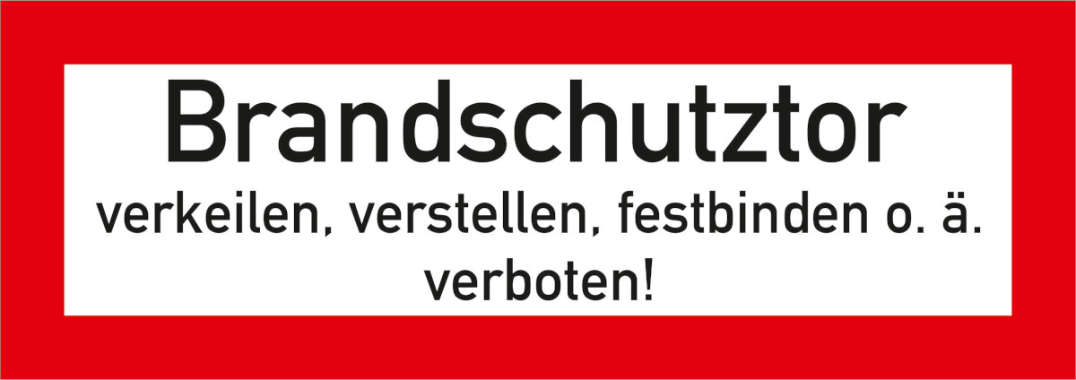 Brandschutzschild als Text Brandschutztor verkeilen, verstellen , festbinden o.ä.verboten!