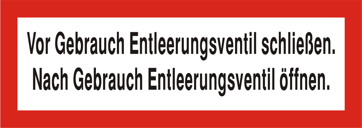 Brandschutzschild "Vor Gebrauch Entleerungsventil schließen…"