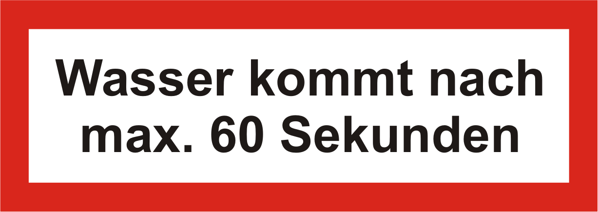 Brandschutzschild "Wasser kommt nach max. 60 Sekunden"