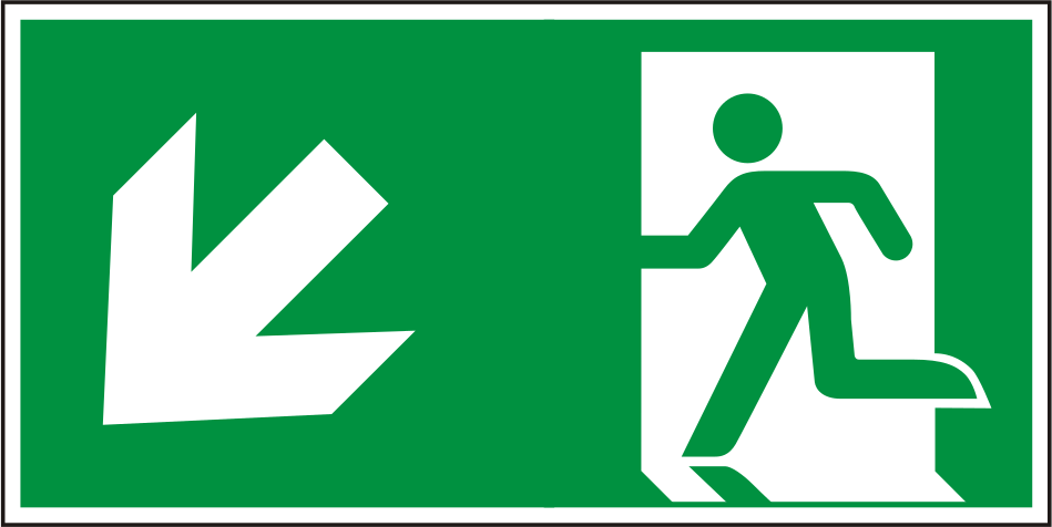Escape route sign left downwards