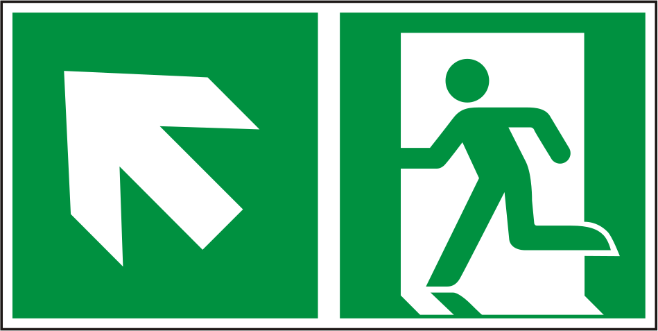 Escape route sign left upwards