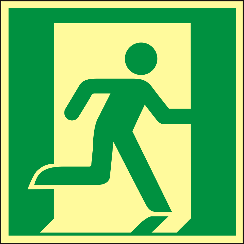 as a symbol of escape route/emergency exit on the left according to ISO 7010 / ASR 1.3 E002
