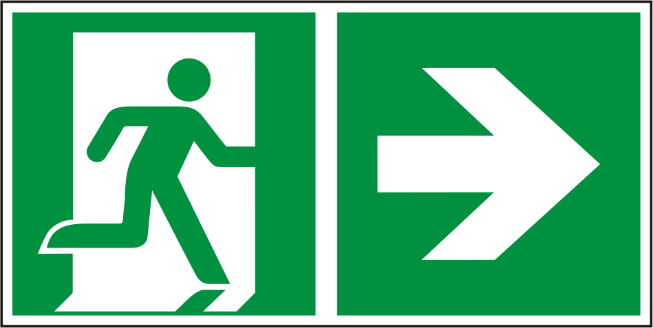 As a combination version to indicate the direction of travel to the right, consisting of emergency exit signs according to ISO 7010 / E 002 + E 005 ISO 3864-3