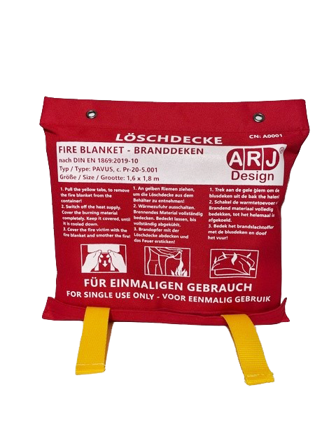 Fire blanket (ARJ DESIGN) made of 100% glass fiber (approx. 400 gr./sqm.Z-Nr: Pr-20-5.0001-De)