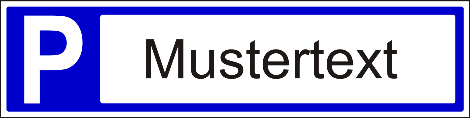 Parkplatzschild: blaues "P", blauer Rand, inkl. Schwarz geplottertes KFZ-Kennzeichen nach Wahl