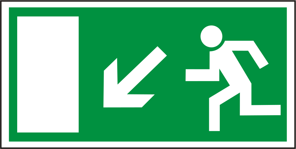 Rettungswegschild links abwärts