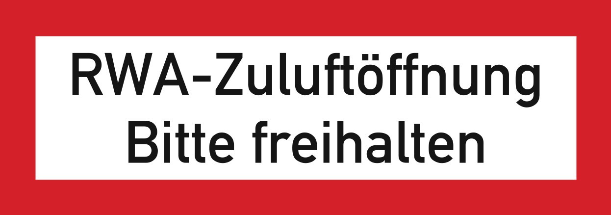 Schild mit Aufdruck "RWA-Zuluftöffnung Bitte freihalten"