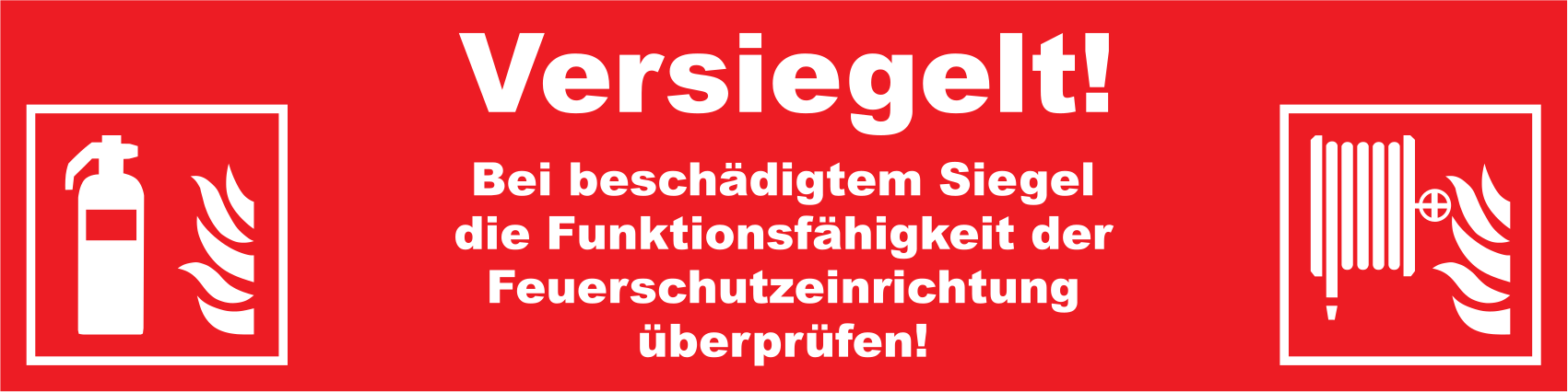 with symbols according to ISO 7010 fire extinguisher (F001) and wall hydrant (F002) ( “SEALED…”)