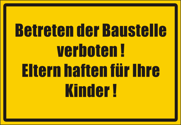 Sign “No trespassing on the construction site, parents are liable for their children”
