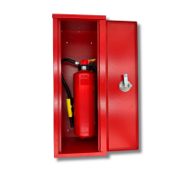 The surface-mounted cabinet is suitable for all standard fire extinguishers weighing 1-12 kg, as well as most CO2 extinguishers with a capacity of up to 5 kg. Thanks to its weather-resistant material, it can be used flexibly both indoors and outdoors.
