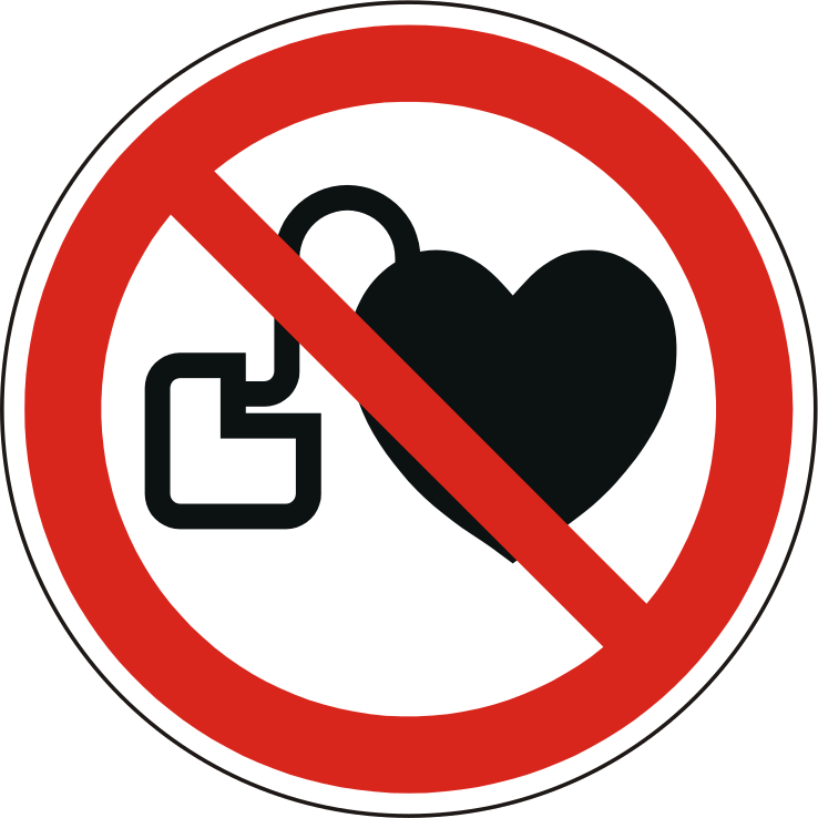 Verbotsschild als Symbol Verbot für Personen mit Herzschrittmacher nach ISO 7010