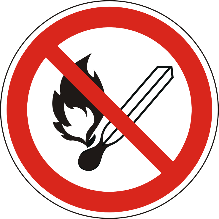 Verbotsschild Feuer, offenes Licht u. Rauchen verboten